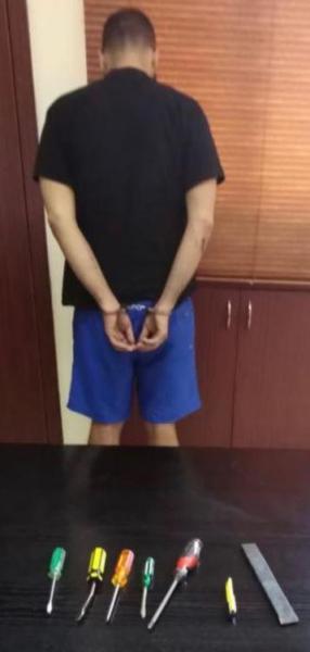 وبتاريخ 1/5/2020، ومن خلال عملية رصد دقيقة، تمكنت قوة من الشعبة، من توقيفه في محلة نزلة عين الدلبة / برج البراجنة - الضاحية الجنوبية، على متن السيارة المستخدمة في عمليات السرقة. وبتفتيشه والسيارة عُثر في داخلها على أدوات (عدّة) تُستخدم في عمليات السرقة.
